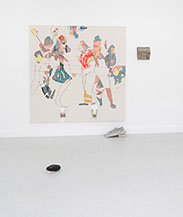 Oil, gloss, acrylic, emulsion, caulk on canvas.