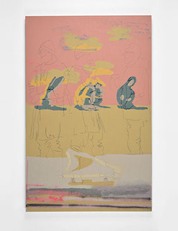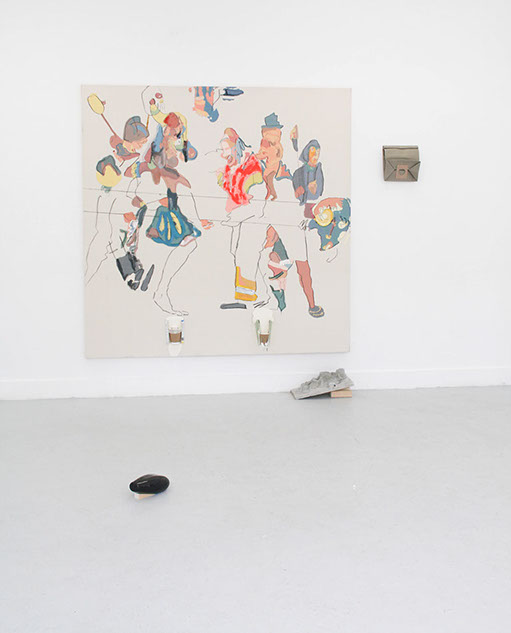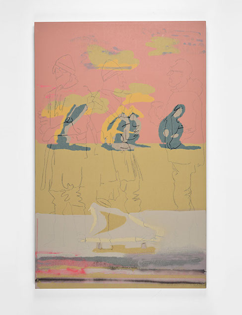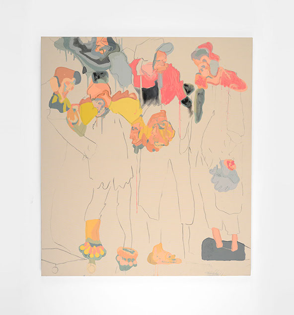 Oil, gloss, acrylic, spray paint and permanent marker on linen.